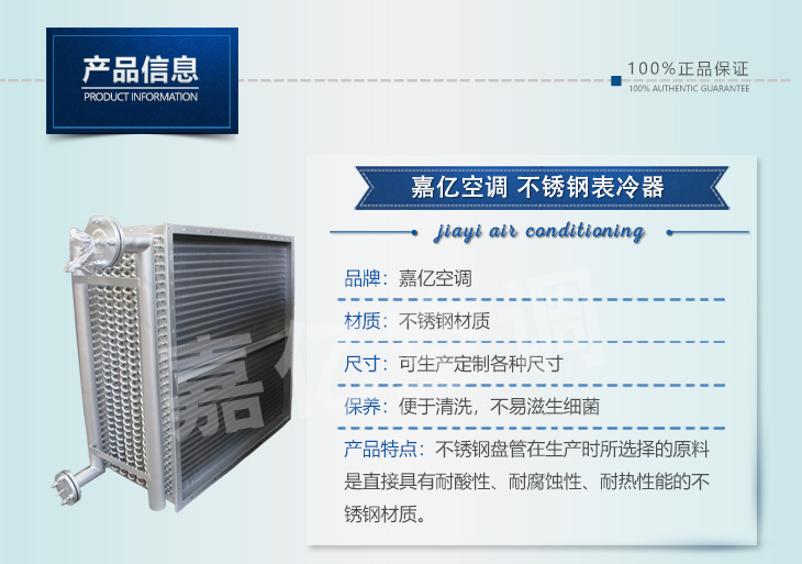 1: 表冷器匯管材料可以是鍍鋅鋼管,也可以是銅管或是不銹鋼管,表冷器翅片可以是普通鋁箔,也可是親水鋁箔;表冷器端護板可以是鍍鋅板也可以是不銹鋼板。