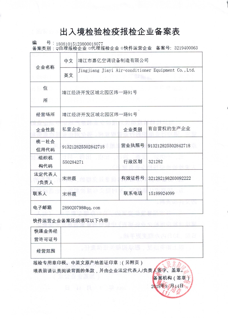 靖江市嘉億空調(diào)設(shè)備制造有限公司