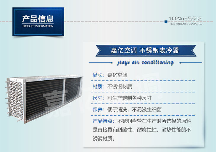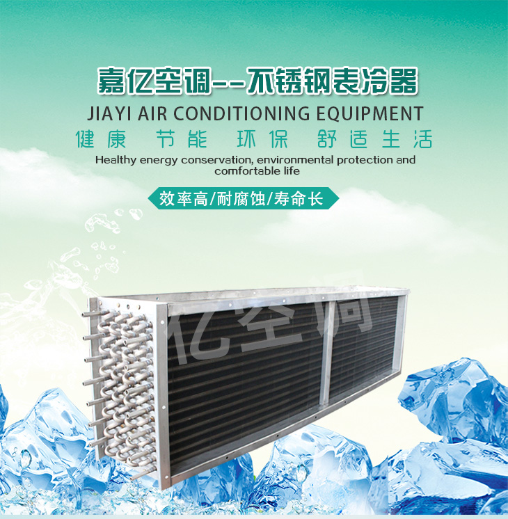 1: 表冷器匯管材料可以是鍍鋅鋼管,也可以是銅管或是不銹鋼管,表冷器翅片可以是普通鋁箔,也可是親水鋁箔;表冷器端護(hù)板可以是鍍鋅板也可以是不銹鋼板。