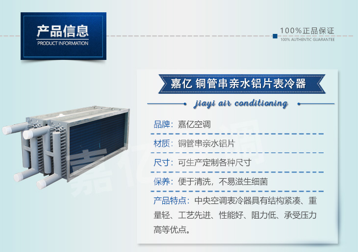 1: 表冷器匯管材料可以是鍍鋅鋼管,也可以是銅管或是不銹鋼管,表冷器翅片可以是普通鋁箔,也可是親水鋁箔;表冷器端護板可以是鍍鋅板也可以是不銹鋼板。