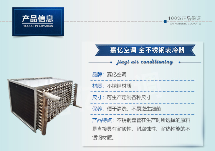 1: 表冷器匯管材料可以是鍍鋅鋼管,也可以是銅管或是不銹鋼管,表冷器翅片可以是普通鋁箔,也可是親水鋁箔;表冷器端護板可以是鍍鋅板也可以是不銹鋼板。